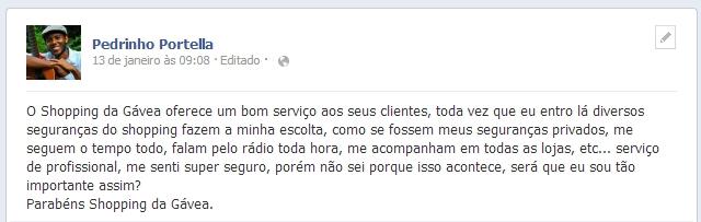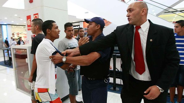Posso citar com propriedade um fato que aconteceu comigo num shopping situado na Gávea, bairro nobre de classe alta da Zona Sul do Rio. Este é um caso muito peculiar, pois a pobreza e a riqueza são acentuadas pela proximidade geográfica, é uma região onde os prédios e as mansões mais valiosos da cidade são rodeados por favelas e comunidades populares, como é o caso da Favela da Rocinha e da Vila Parque da Cidade, uma pequena comunidade situada dentro da reserva florestal no vale da Gávea, local onde eu moro há quatro anos. Na última ida ao shopping local, simplesmente fui escoltado por quatro seguranças que ao me verem entrar no shopping logo trataram de se movimentar em torno de um procedimento preconceituoso e puramente sustentada pelo medo. Fui acompanhado pelos seguranças por todo o percurso de compras, o que durou um pouco mais de uma hora. Eles se comunicavam por rádios e revezavam as vezes para não ficar tão evidente a perseguição, mas estava claro que eles me perseguiam e me vigiavam como se a minha condição social e racial determinassem uma possível atitude criminosa de minha parte.