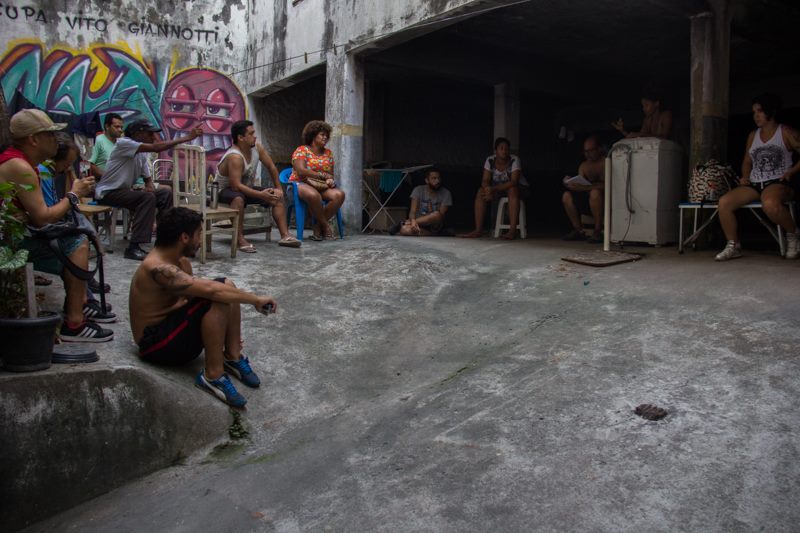 Durante a última semana de abril, os moradores da Ocupação Vito Giannotti receberam a notícia do mais recente obstáculo na luta para transformar o hotel abandonado em unidades habitacionais: um mandado de reintegração de posse de um juiz que força os moradores a saírem e devolverem o edifício para o INSS. Maio marca o quarto mês da ocupação localizada no bairro de Santo Cristo, na região do Porto, no Rio. Ao longo dos últimos meses a incerteza política no nível local e federal, a falta de acesso aos recursos básicos como água, alimentos e suprimentos e as preocupações de segurança, têm sido obstáculos significativos para a luta da ocupação.
