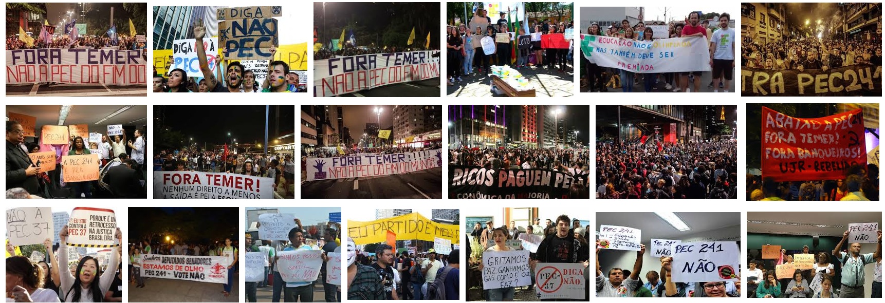 Terça-feira, 29 de novembro, protestos eclodiram fora do Congresso Nacional em Brasília, uma vez que o Senado aprovou a proposta para a emenda constitucional que autoriza a implantação de medidas severas de austeridade. Se aprovada, a proposta apresentada pelo Presidente Michel Temer estabelecerá um teto baixo em todas as despesas do governo federal para os próximos vinte anos. Aproximadamente 10.000 manifestantes, incluindo professores, estudantes, funcionários públicos e trabalhadores sem-terra expressaram o desacordo e pressionaram o Congresso a votar contra a proposta. Três carros foram queimados e a polícia usou gás lacrimogênio e spray de pimenta para dispersar a multidão.