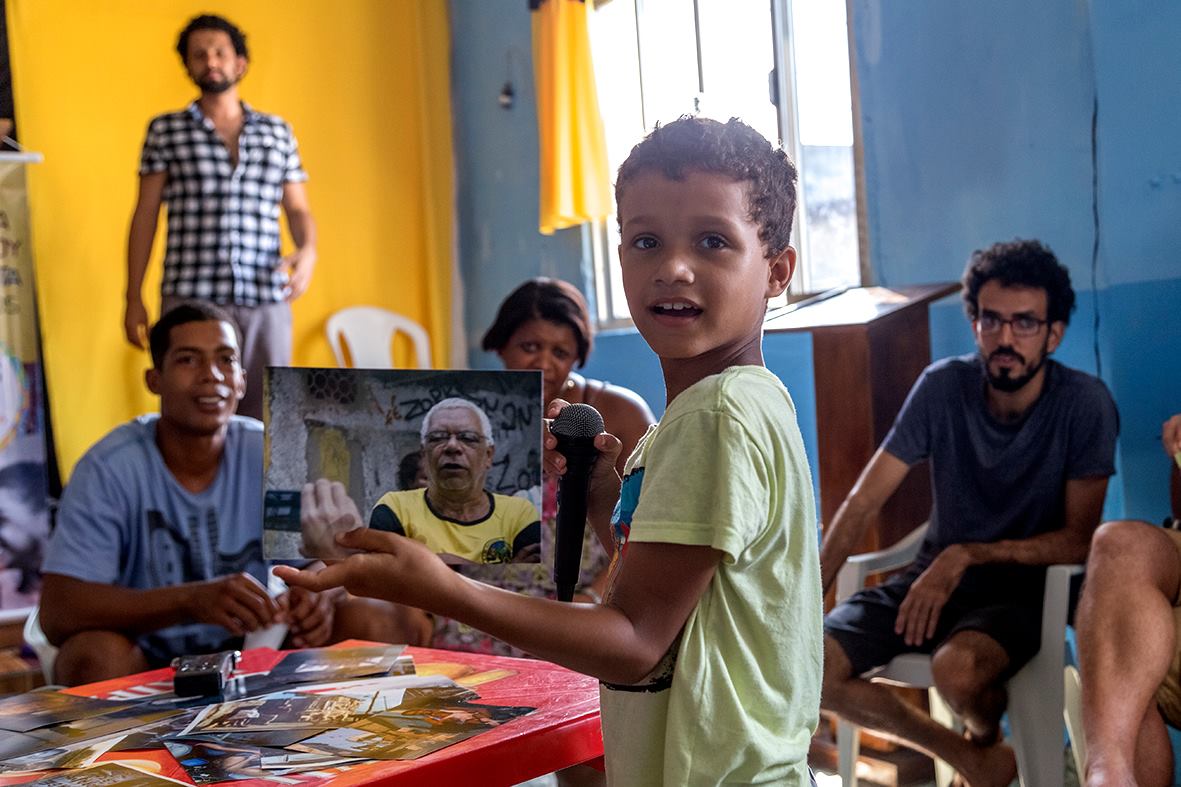 Daniel Oliveira, de 7 anos e cria do morro, registrou diversos momentos do encontro, como o sorriso de um dos participantes.