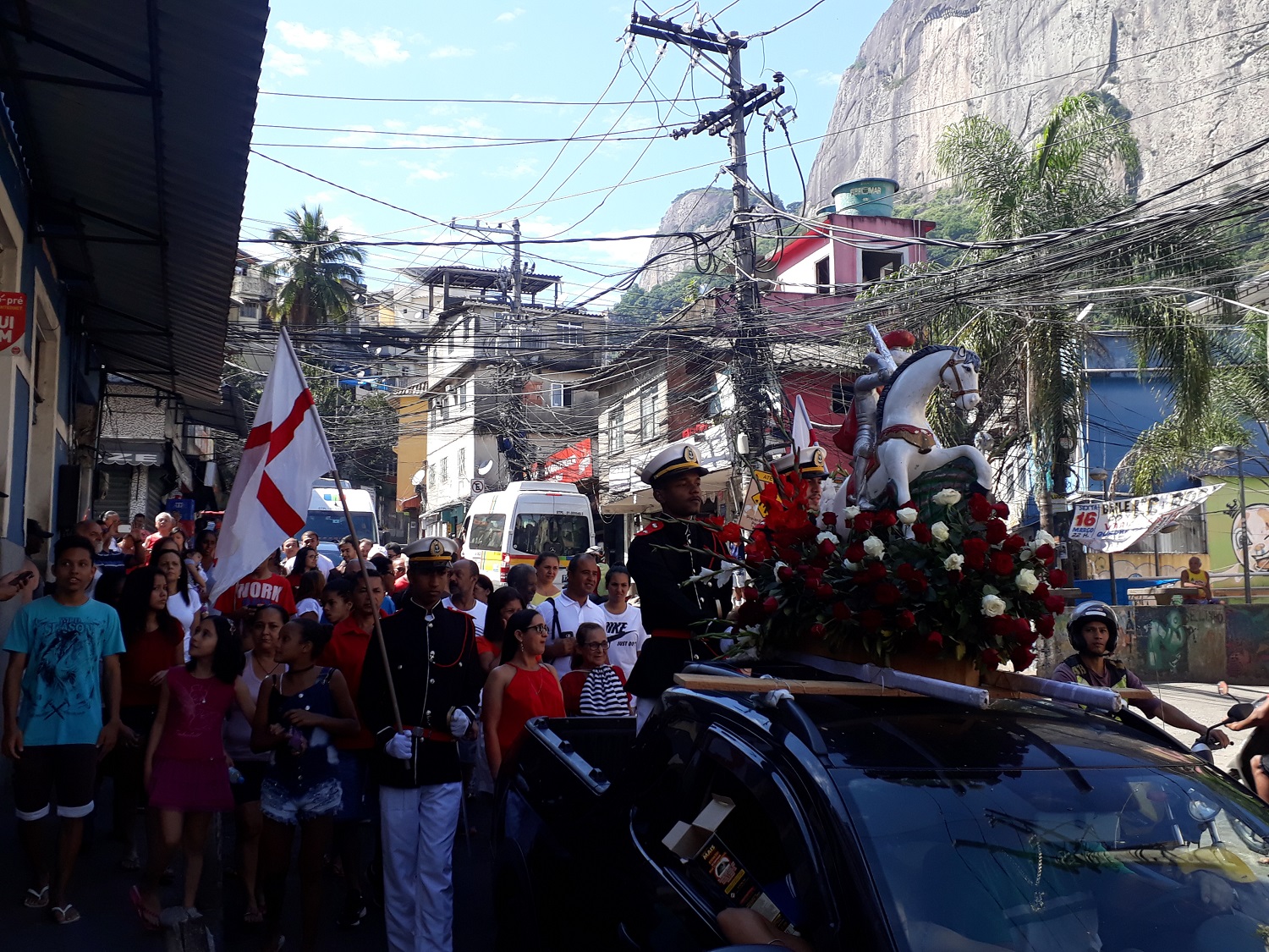 Para Frei Sandro, pároco da Igreja Nossa Senhora da Boa Viagem, que fica na Estrada da Gávea–principal via de acesso da comunidade–a realização da missa é importante pois resgata ações que já são feitas na região. ‘’Ultimamente a gente tem sentido dificuldade por causa dos confrontos. A gente rezava o terço todas às segundas, no mês de maio tinha missa’’. A festa demonstra também a oportunidade do encontro dos moradores entre si e o sincretismo que o santo carrega. ‘A igreja tem esse papel de juntar as pessoas, de fazer elas se sentirem membras de uma comunidade não apenas religiosa mais humana. É oportunidade de celebrar a vida, a própria existência. Sair de casa, encontrar as pessoas, independente da fé. Não é um problema, São Jorge é do povo’’.