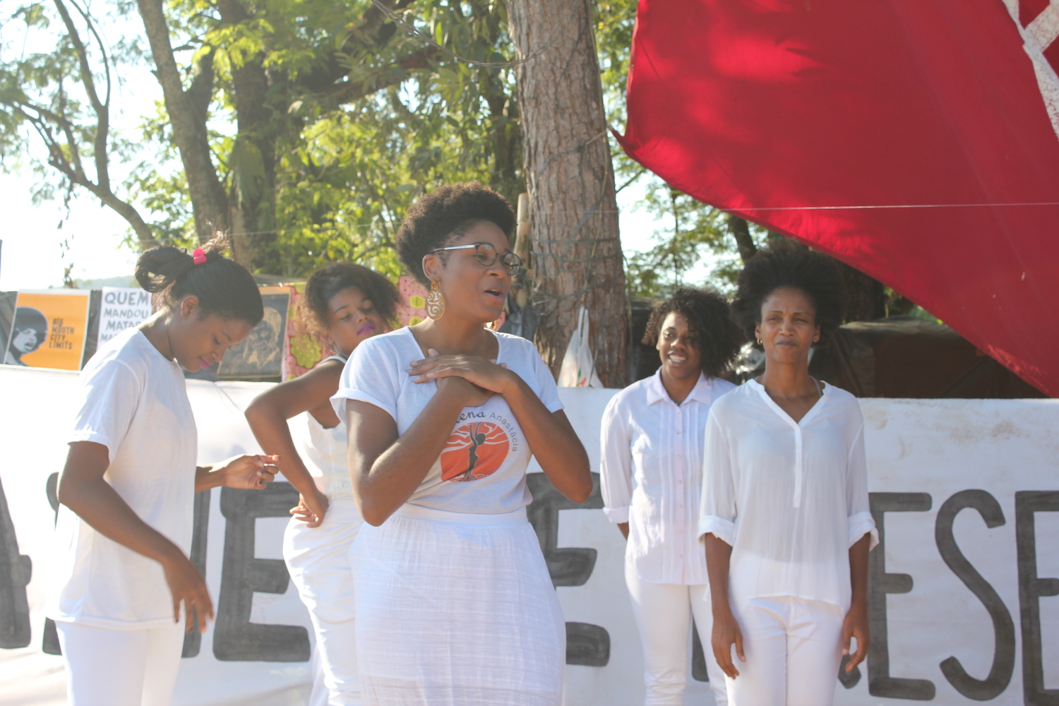 Recentemente, a ocupação recebeu o Coletivo Madalena-Anastácia, um coletivo do Teatro do Oprimido formado por mulheres negras que se apresentaram para moradores. Eles se apresentaram diante de uma faixa com as palavras “Marielle Presente” em homenagem à Vereadora Marielle Franco, assassinada em 14 de março. A performance explorou as dificuldades e complexidades de viver como mulheres negras em uma sociedade que tantas vezes tenta silenciá-las através da violência, e convocou os membros do público para compartilharem suas histórias pessoais e se engajarem em um debate aberto. Após a apresentação, o coletivo de teatro facilitou uma roda de conversa com as mulheres que assistiram e participaram da performance. Depois, Fabíola discutiu o impacto de tornar performances como o espetáculo da tarde acessível ao povo da ocupação. “É importantíssimo alcançar cultura porque é reforçado que pobre só precisa trabalhar, e que ele não precisa ter lazer. Você não pode levar seu filho no cinema ou no teatro, pois é uma coisa muita cara e muito fora do nosso orçamento, da nossa realidade.”