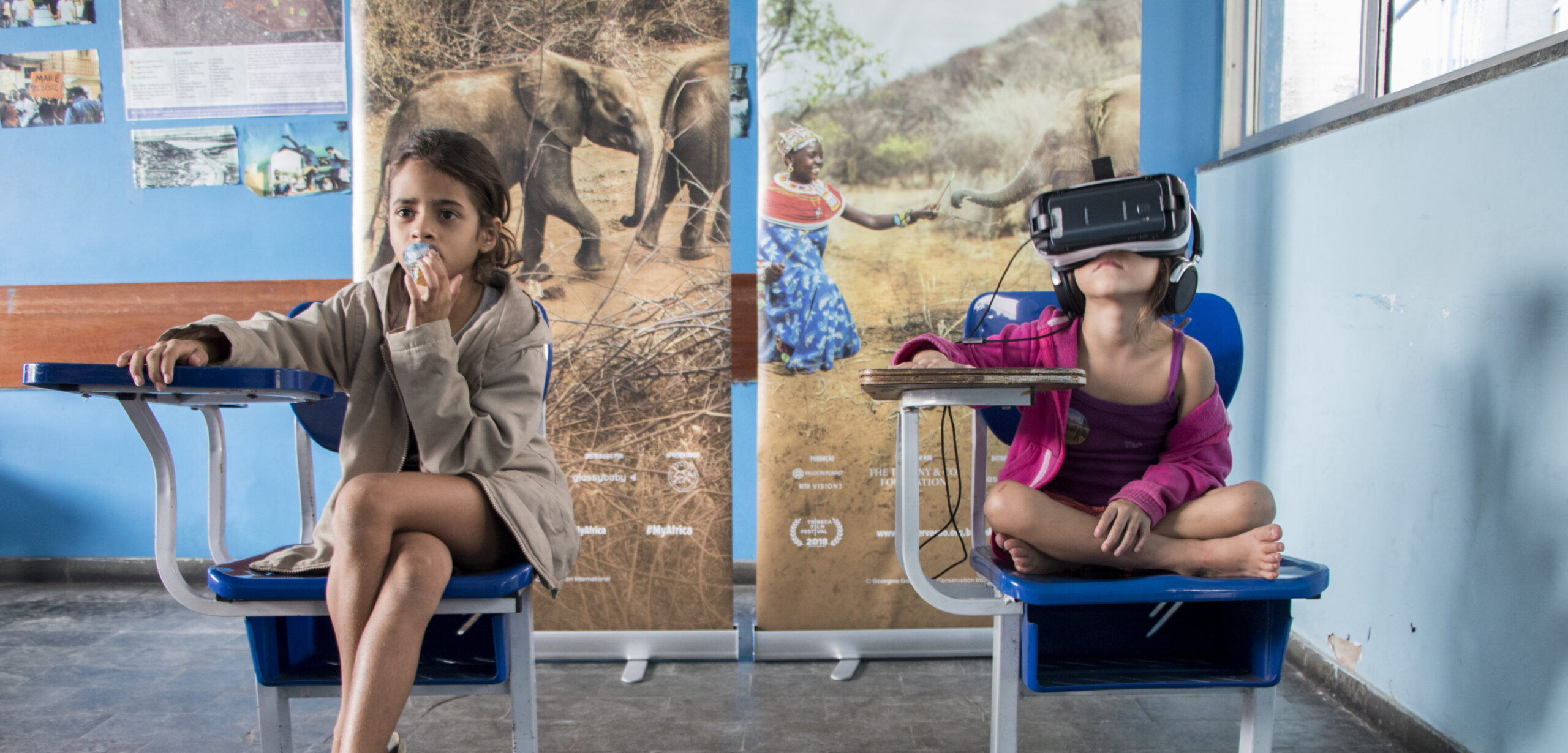 Os participantes também assistiram a dois curtas-metragens sobre desmatamento na Amazônia e proteção da vida selvagem e da natureza na África, ambos em realidade virtual. As experiências de realidade virtual foram possíveis graças à Conservação Internacional Brasil, que trabalha para proteger a natureza como forma de proteger também as futuras gerações de seres humanos. Essa divertida experiência foi um grande sucesso com as crianças presentes no evento.