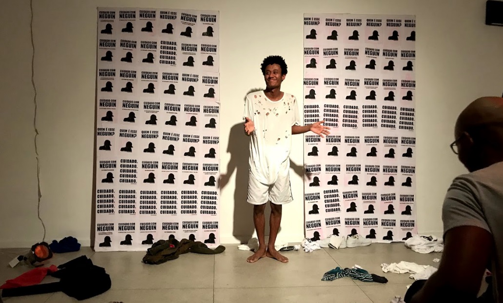 O interessante da peça é que ela mostra várias perspectivas da vida de um “neguin”, nenhuma livre de racismo. Por exemplo, há o “neguin” ostentação, que ganhou dinheiro com o funk e hoje é criticado pelo seu estilo. Tem o neguin sofisticado com echarpe e óculos escuro, que se apaixonou por um homem rico na Farme de Amoedo e esqueceu do seu passado. Também há o “neguin” que toma um chope com os amigos no Leblon, resolve ir no BB Lanches comprar um pão de queijo e assusta uma moça branca, que segura sua bolsa mais forte e apressa os passos. Afinal, tem que ter cuidado com o “neguin”!