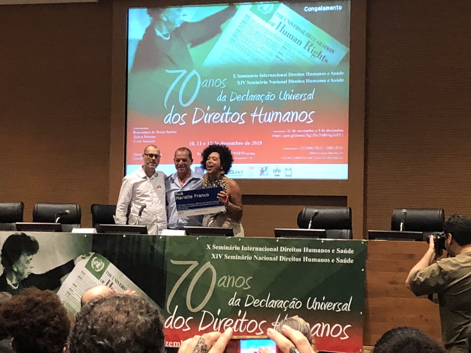 Foram comemorados, no dia 10 de dezembro, os 70 anos da Declaração Universal dos Direitos Humanos e, para relembrar este dia, foram realizados o X Seminário Internacional Direitos Humanos e Saúde e o XIV Seminário Nacional Direitos Humanos e Saúde na Escola Nacional de Saúde Pública da Fiocruz, durante os dias 10, 11 e 12 de dezembro. O evento foi organizado pelo Departamento de Direitos Humanos e Saúde da Escola Nacional de Saúde Pública Sergio Arouca (ENSP), em parceria com o Centro de Estudos Estratégicos da Fiocruz (CEE-Fiocruz), o Sindicato dos Trabalhadores da Fiocruz (Asfoc-SN), o Centro Brasileiro de Estudos de Saúde (Cebes) e a organização Juízes para a Democracia, e contou com a participação de conferencistas como o sociólogo português Boaventura de Sousa Santos; o embaixador Celso Amorim, e a vereadora de Niterói e deputada federal eleita nas eleições de 2018, Talíria Petrone. Além disso, teve atividades culturais como o grupo Música na Calçada e o a peça teatral Luiz Gama – Uma Voz Pela Liberdade.