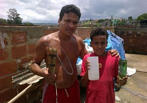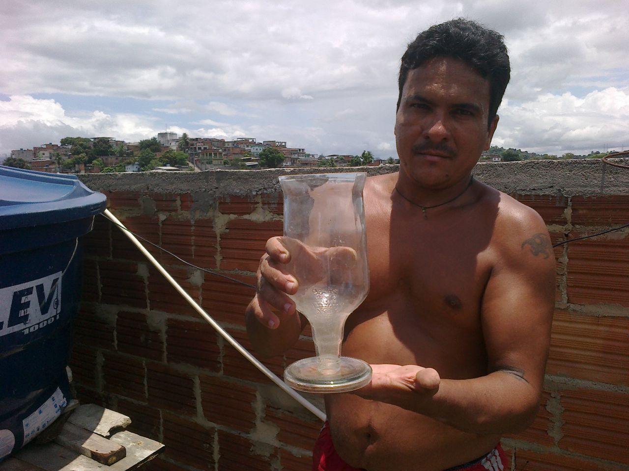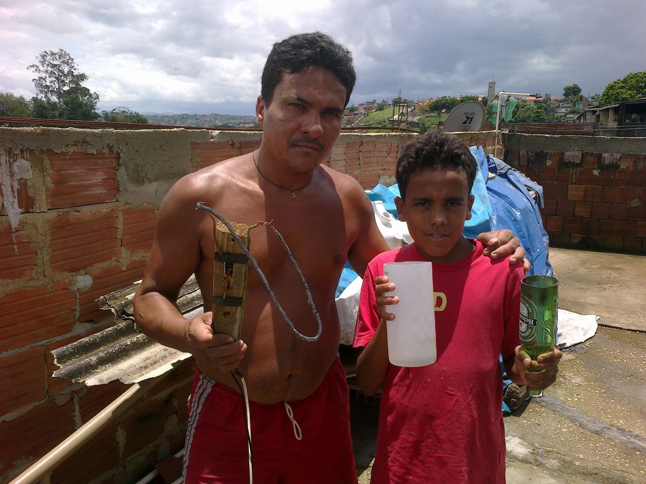 Auxiliar de serviços gerais no Centro do Rio de Janeiro, este batalhador encontrou na reciclagem uma forma de completar a renda familiar. “Passei quatro anos desempregado, neste período mantive a casa e minha família fabricando e vendendo as taças e os copos”. Hoje ele conta com a ajuda do seu filho mais velho, Alec Sander, um menino muito inteligente de 11 anos que já conhece os macetes para desenvolver um trabalho legal junto com seu pai. “Eu aprendo muito rápido, ajudo meu pai, lavo as garrafas, coloco pra secar, também passo a cola. Só não faço os cortes porque é muito perigoso”, diz o menino.