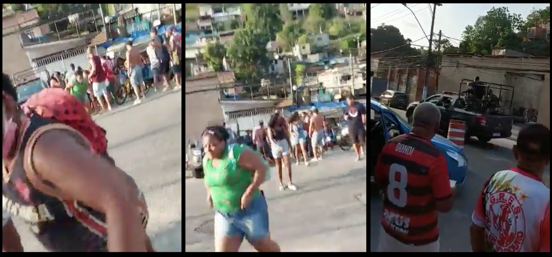 Moradores, em sua maioria negros—inclusive mulheres de mãos dadas com crianças—começaram a correr para se protegerem. Após os disparos, a equipe policial foi embora levando o jovem. Uma patrulha da Polícia Militar seguiu estacionada no local.