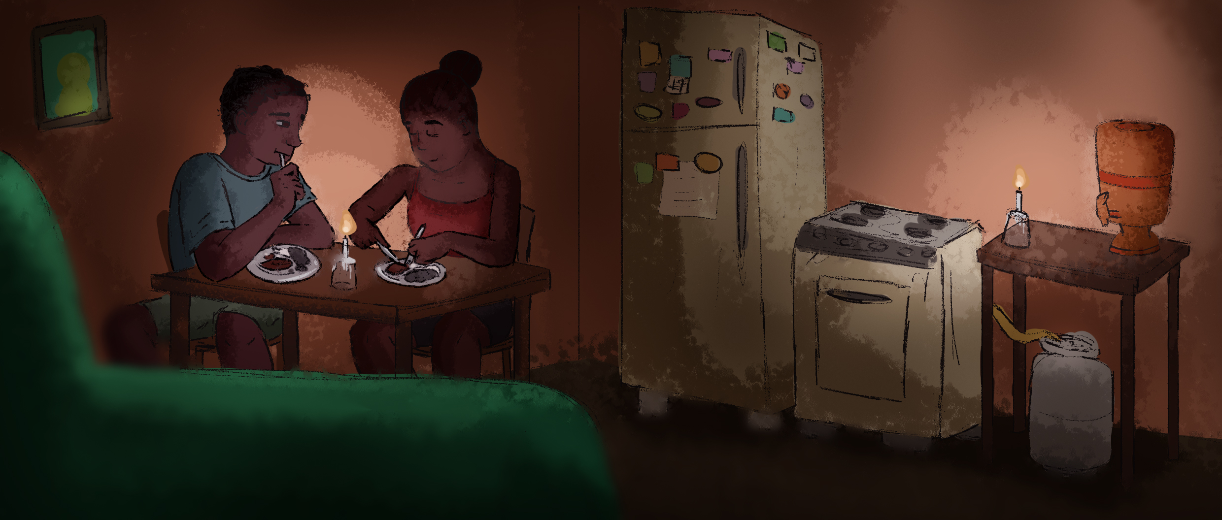 Desde ontem sem energia elétrica lá em casa. Perdi tudo da geladeira. Outros moradores perderam alimentos. Sem falar da falta de água.