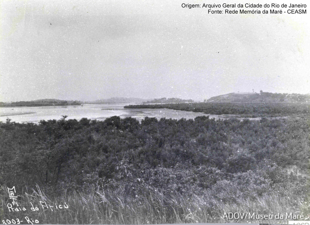 Livro A Maré em 12 Tempos. Foto: Acervo ADOV Museu da Maré – CEASMFoto da Praia do Apicú encontrada no Arquivo Geral da Cidade do Rio de Janeiro pela Rede Memória da Maré. Acervo Dona Orosina Vieira (ADOV)