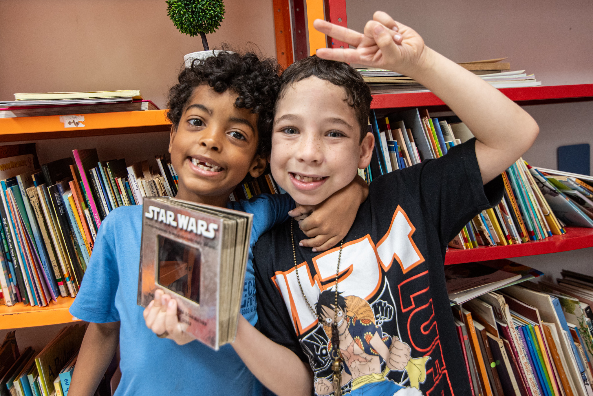 Dentre as crianças que participaram da atividade de contação de histórias, Francisco Rodrigues*, de seis anos de idade e em processo de alfabetização, fala que gosta da biblioteca porque “na minha idade, eu só gosto de ler as figuras dos livros”. Já Bernardo Medeiros*, de sete anos, diz que frequenta o espaço porque “aqui tem livros, brincadeiras, histórias e lanches”.