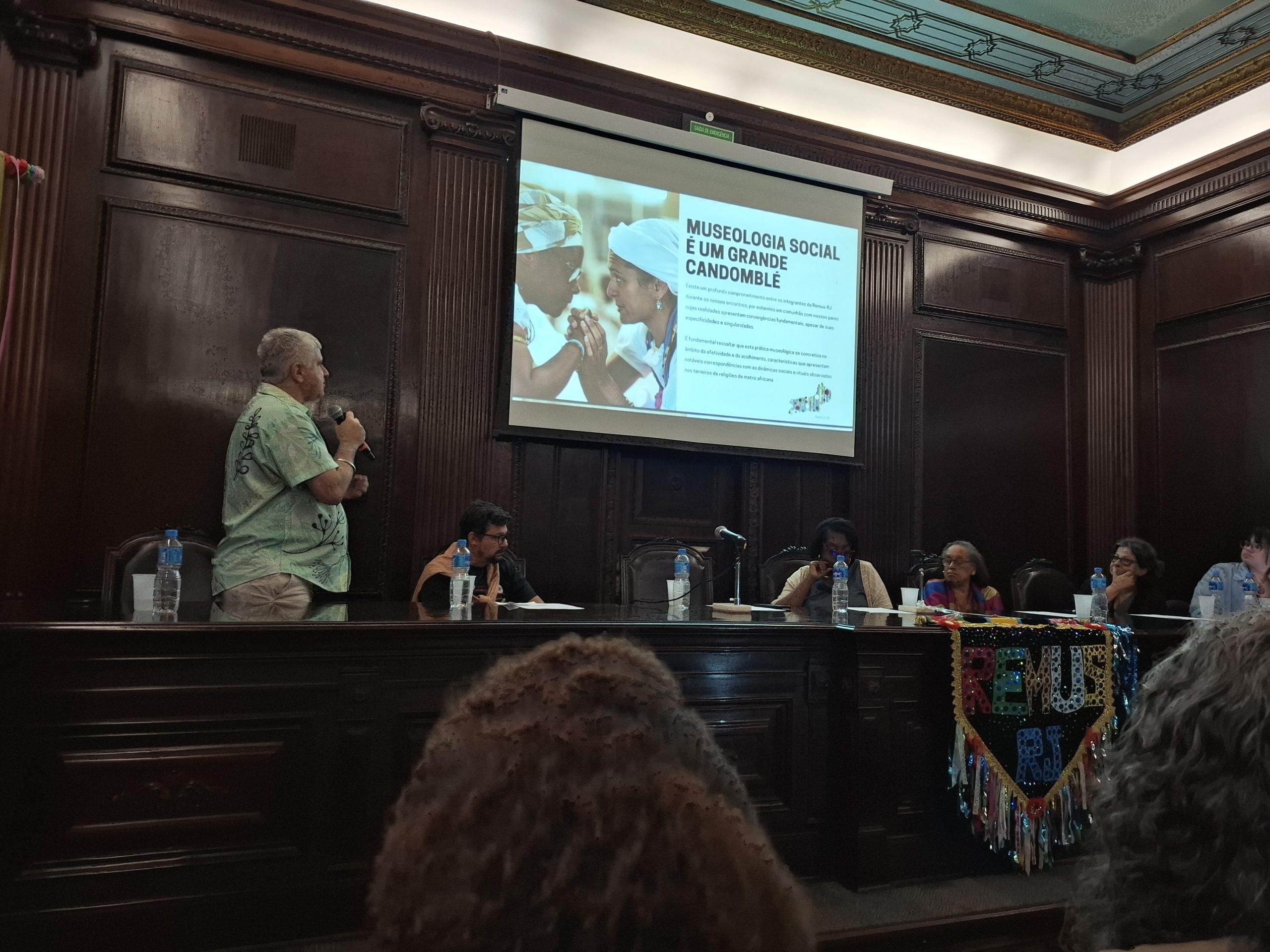 Mestre Paulão Kikongo também enfatizou a necessidade da presença de indivíduos ligados à museologia social nas discussões sobre políticas públicas e tomada de decisões. “Tudo nosso é em roda: samba, capoeira, gira… Só o que não circula entre nós é o dinheiro,” ele acrescentou.