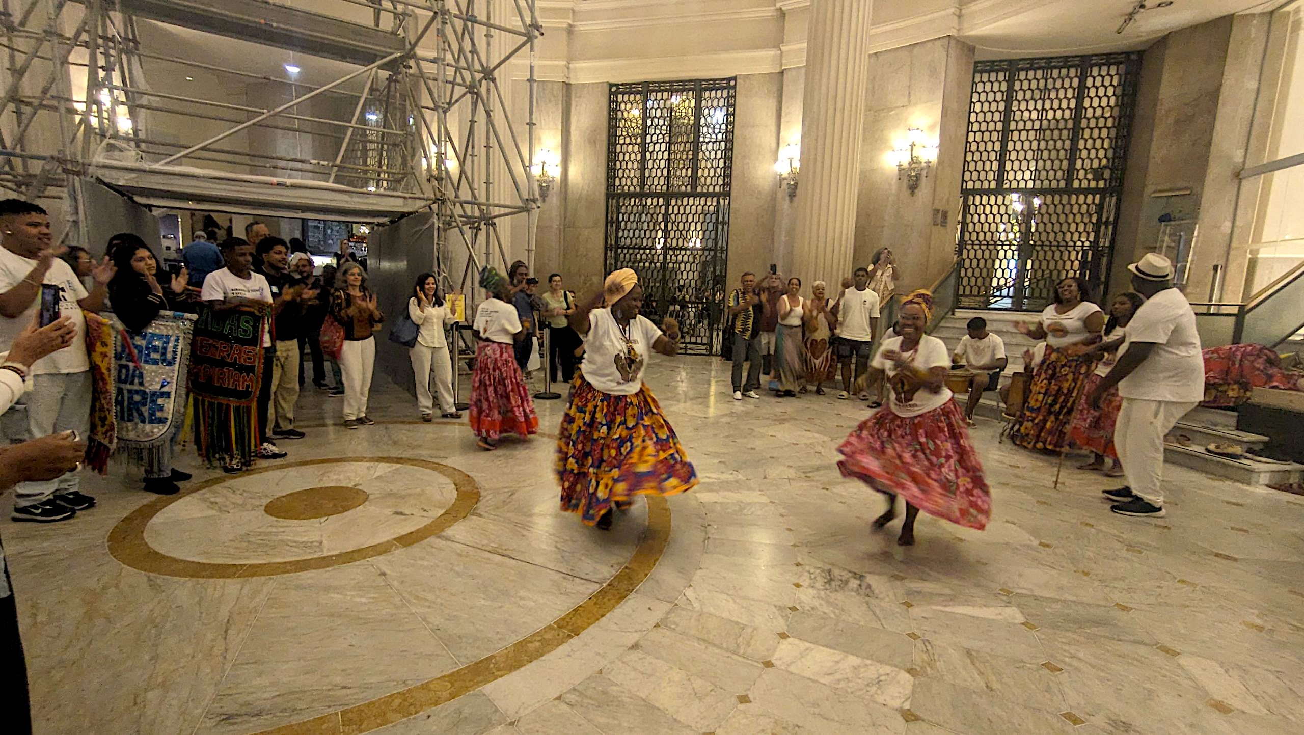 No térreo, uma roda de jongo puxada pelo Quilombo de Bongaba aguardava o cortejo. O evento se encerrou provocando nos presentes a sensação de que a museologia social serve para a vida daqueles que defendem a memória na certeza de que o futuro será melhor.