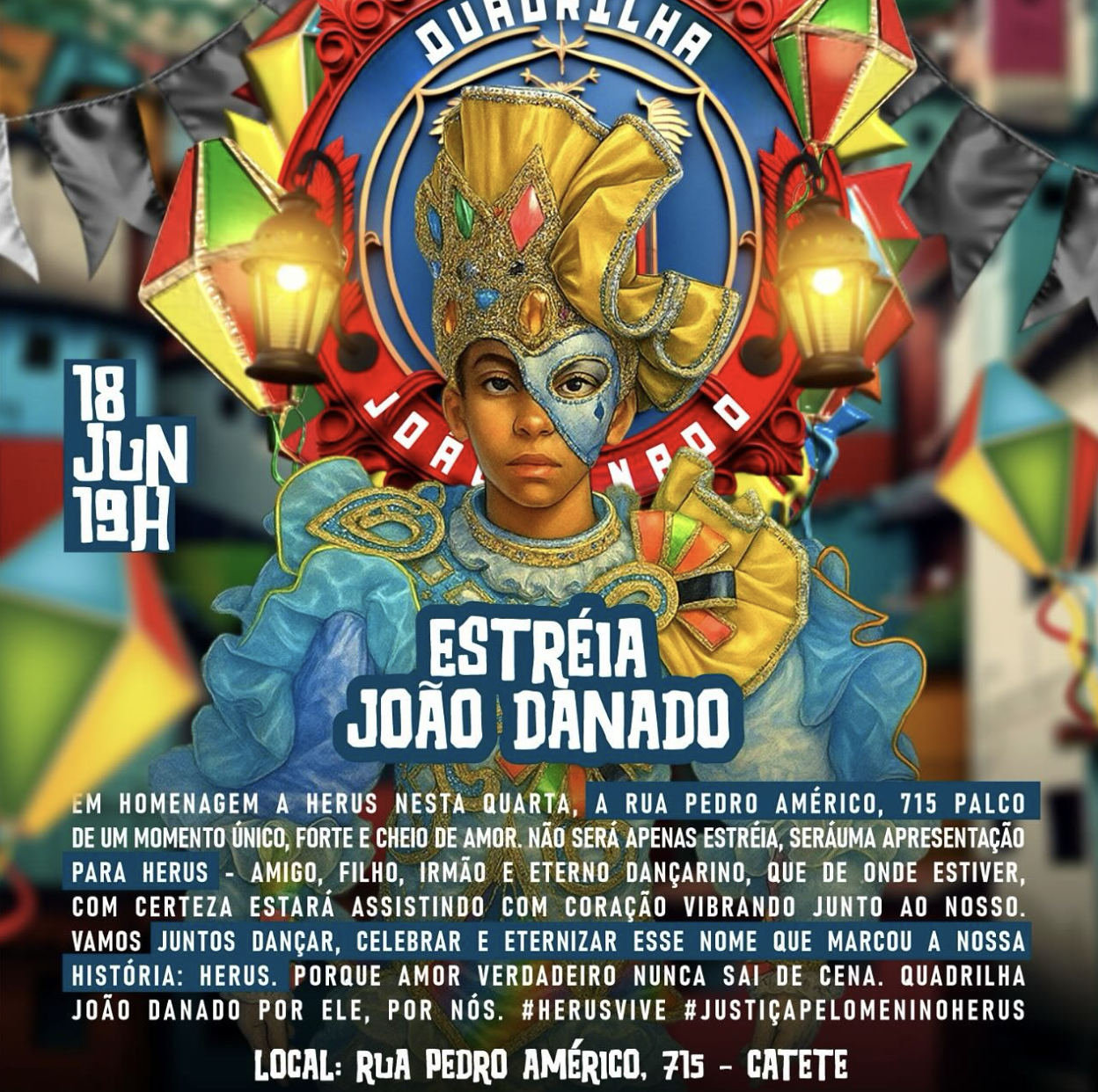 Na Zona Sul do Rio de Janeiro, mais precisamente entre os bairros do Catete, Glória, e Santa Teresa, se localiza o Morro Santo Amaro. Na madrugada de 7 de junho, Santo Amaro se preparava para mais uma de suas tradicionais festas juninas, mas o que era um momento de alegria se transformou em dor e revolta quando a brutalidade policial tirou a vida do jovem Herus Guimarães Mendes, 24 anos, e traumatizou dezenas de crianças e moradores.