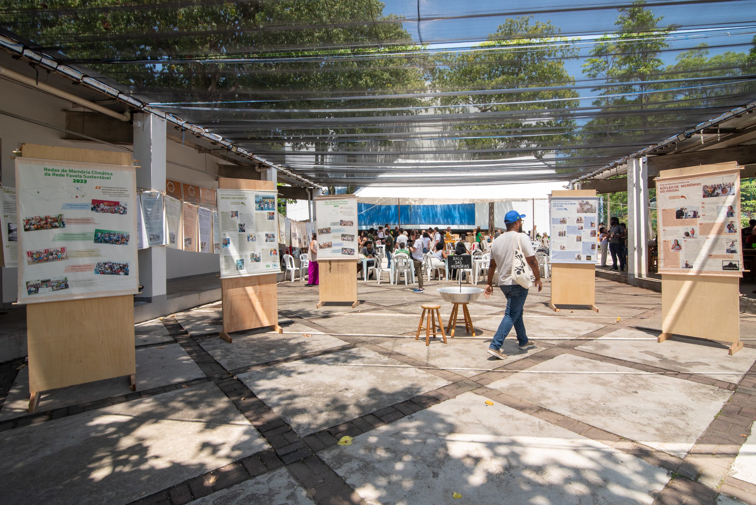 No dia 5 de dezembro, em meio ao VI Encontro de Composteiros e ao Encontro Anual de Saúde na Favela, a Arena Dicró recebeu a exposição Memória Climática das Favelas no Complexo da Penha, na Zona Norte do Rio de Janeiro. Realizada em parceria com a Rede Favela Sustentável (RFS)*, a exposição fez parte de uma diversa agenda de atividades que teve início no dia 24 de novembro na Escola Municipal Brant Horta com uma roda de conversa com os estudantes. O encerramento ocorreu em 10 de dezembro, na Praça do Mineirinho, na Vila Cruzeiro, com atividades abertas ao público.