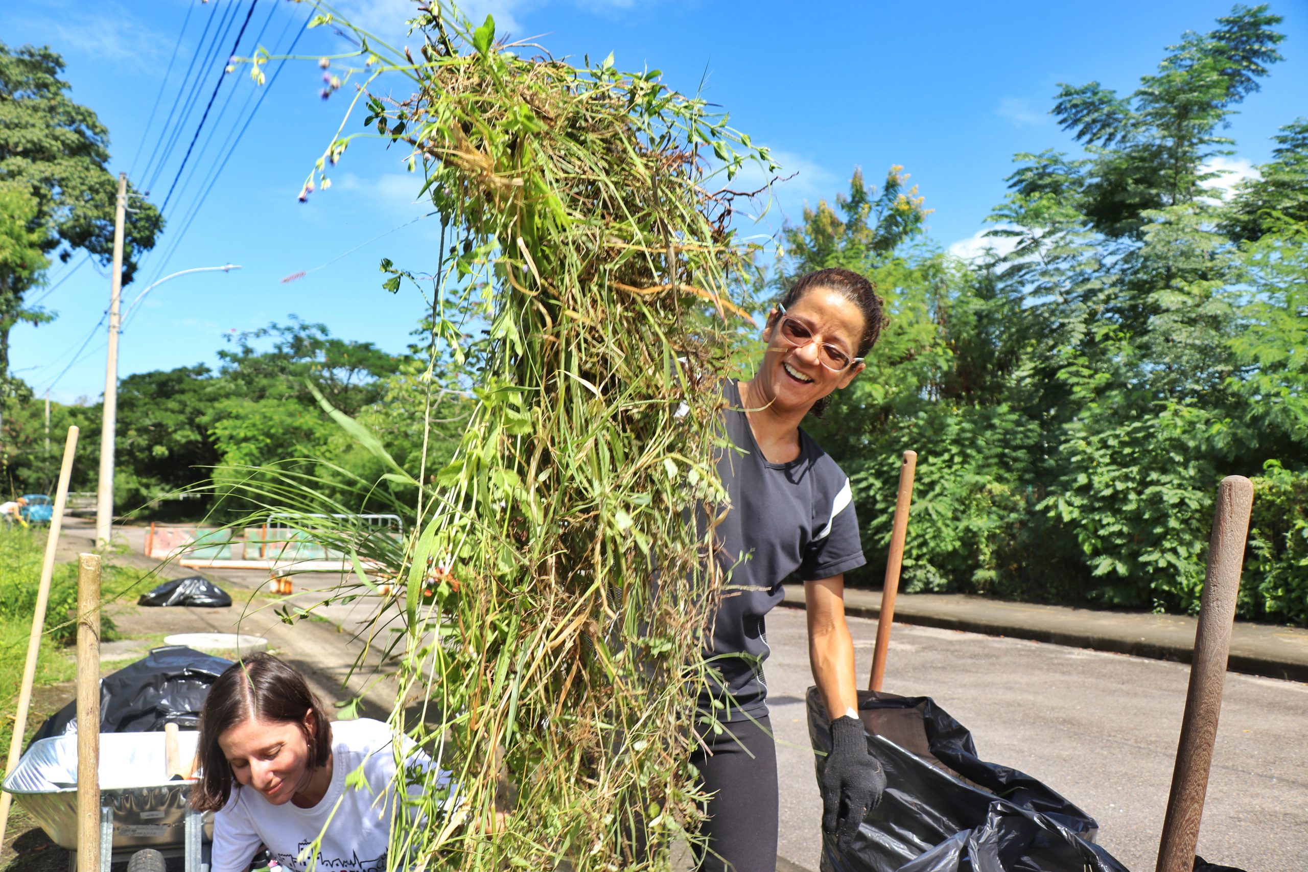“O mutirão foi bem produtivo, apesar de não termos conseguido realizar o plantio de mudas. O mais necessário era fazer a capina do mato, que cresce muito rápido e, infelizmente, não conseguimos mantê-lo baixo sozinhas. Com frequência, solicitamos que a Comlurb realize a poda do mato. Normalmente, eles fazem [só] na área mais próxima do hotel. A área que fizemos o mutirão fica mais esquecida, não é limpada com a frequência necessária, por isso, o mato fica alto demais, colocando a segurança das pessoas em risco, tanto dos moradores da Vila, quanto dos pedestres que caminham na ciclovia… Foi bacana receber pessoas de outras comunidades e voluntários que ficaram sabendo do nosso mutirão e vieram somar conosco. Trocamos experiências, o que gera novos aprendizados. Apesar do mutirão ter sido uma atividade pontual, ele não termina ali.”